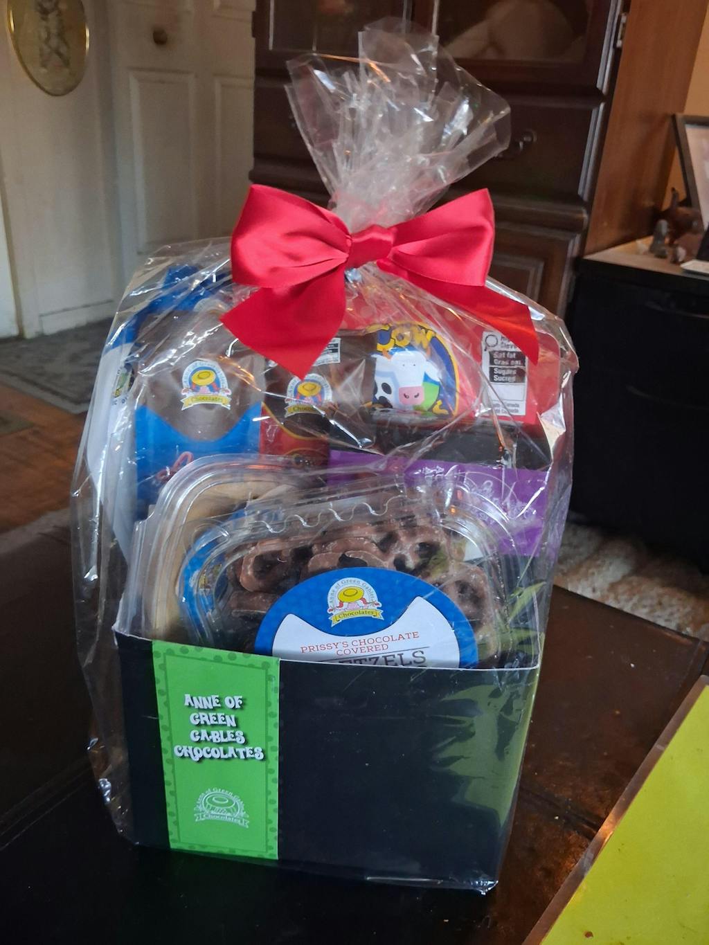 This basket will be delivered in a transparent cello bag with a bow on top.